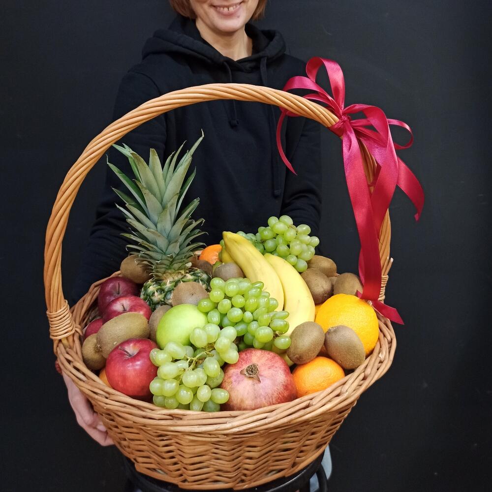 Подарочная корзина от Zakazbuketov. Сочный, яркий вкус, наполненный настоящими витаминами. Состав фруктовой корзины зависит от сезона. Подробности уточняйте у Вашего менеджера.