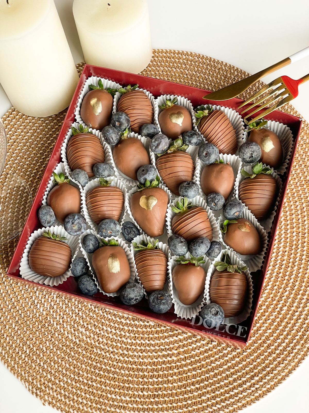 Открытка - 1; Клубника в шоколаде - 20; Коробочка для клубники - 1; Ягодный декор - 2;