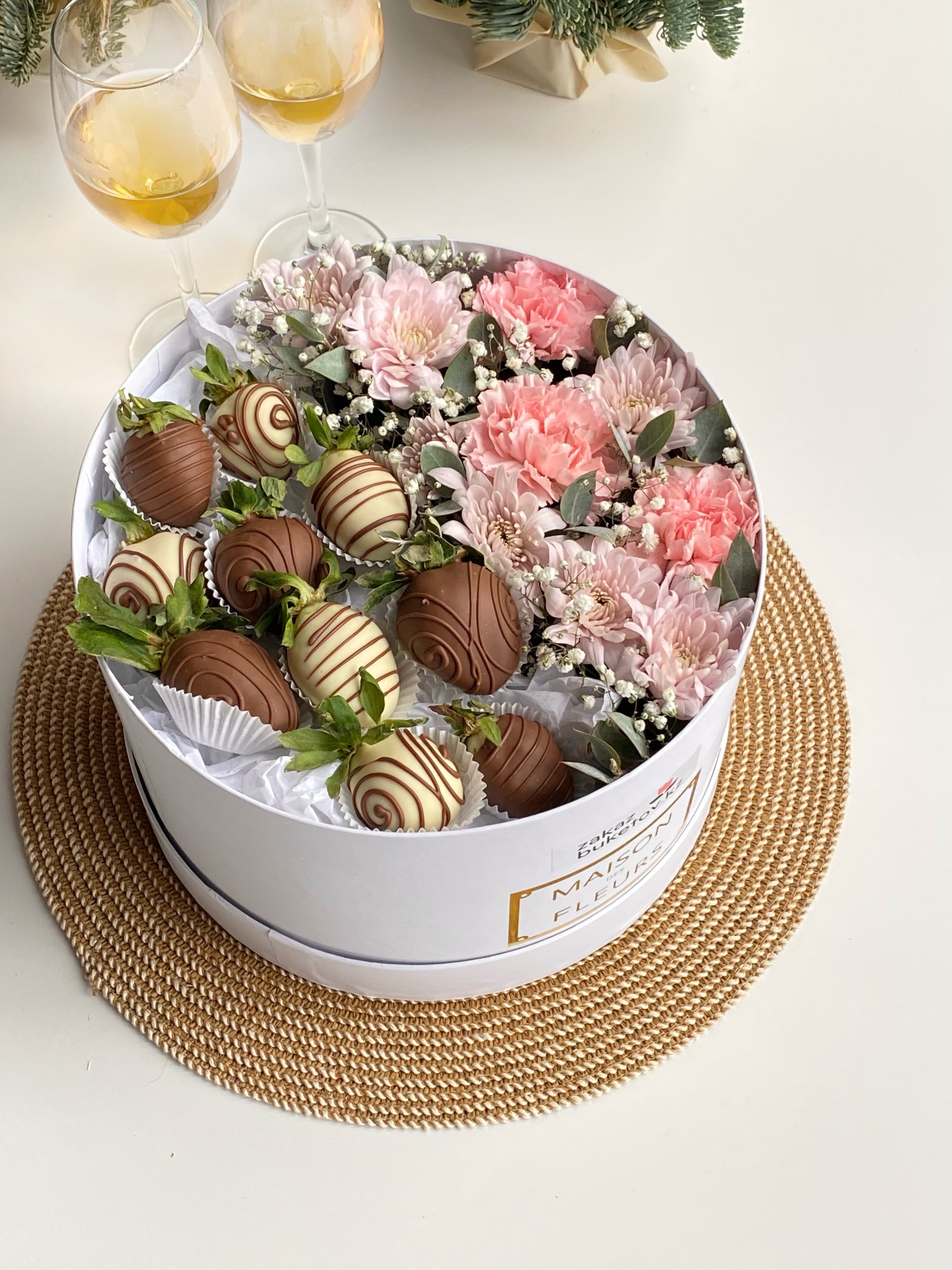 Мы всегда можем составить композицию из цветов и клубники в шоколаде для ваших любимых