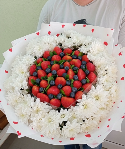 Вкусный букет из свежих сезонных ягод в сочетании с весенними цветами станет приятным и оригинальным подарком от Zakazbuketov.kz