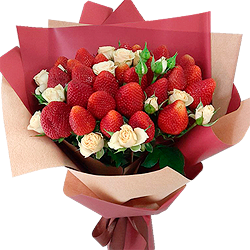 Вкусный букет из свежих сезонных ягод в сочетании с весенними цветами станет приятным и оригинальным подарком от Zakazbuketov.kz