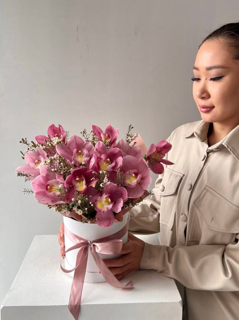 Нежная орхидея в коробке с ваксом.