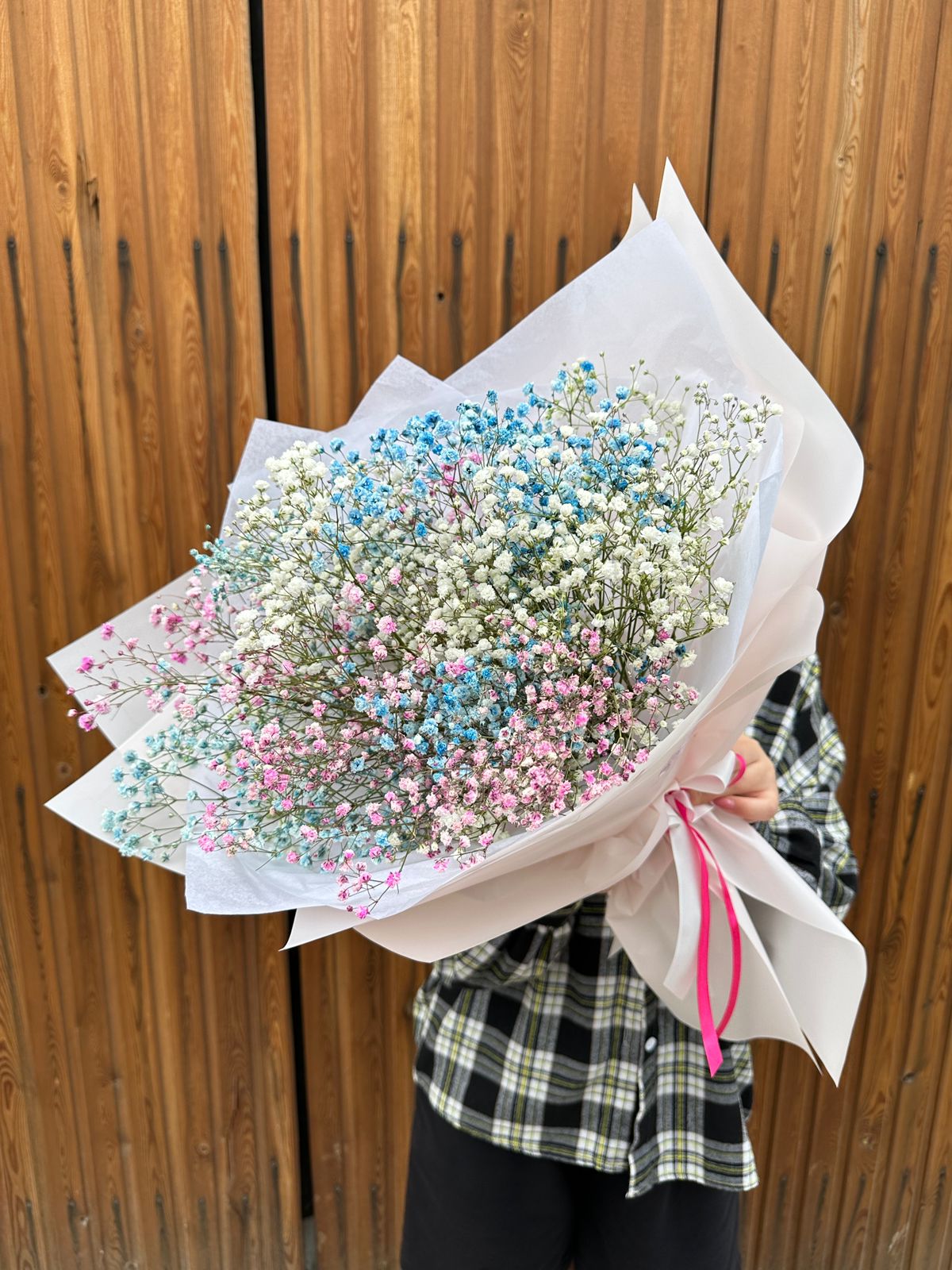 Моно букет из 5 веток гипсофилы можно дарить любому получателю. Если Вы хотите подарить незабываемые эмоции дорогому человеку — закажите доставку цветов в Zakazbuketovkz