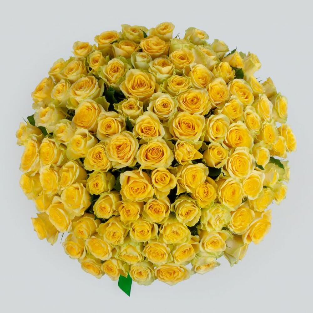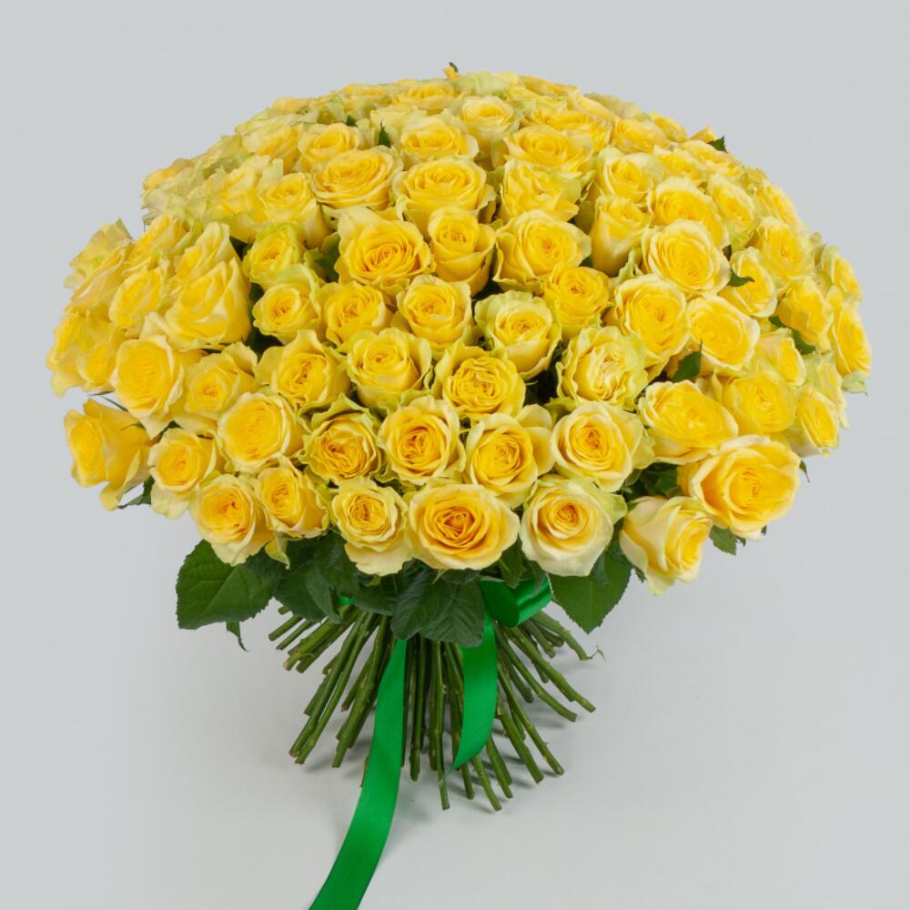 Яркий, насыщенный и жизнерадостный букет из 101 желтой розы несет в себе частичку солнечного света и тепла. Великолепный и символичный подарок к любому случаю, ведь желтый цвет ассоциируется со счастьем, богатством и достатком.