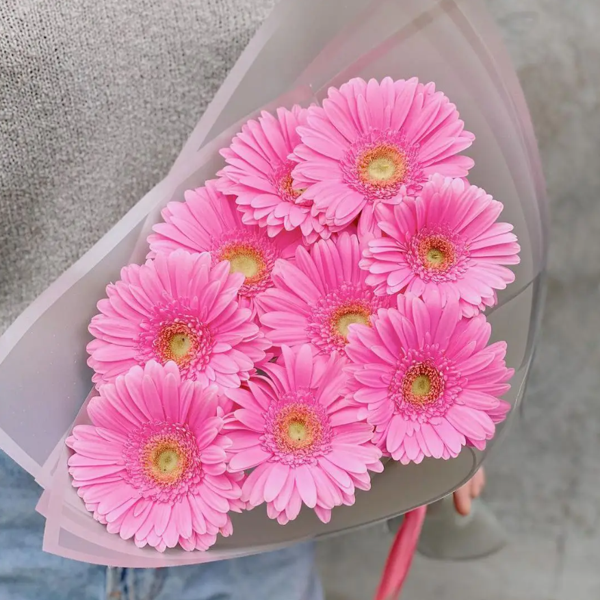 Букет из 9 гербер в стильном оформлении. Если Вы хотите подарить незабываемые эмоции дорогому человеку — закажите доставку цветов в Zakazbuketovkz