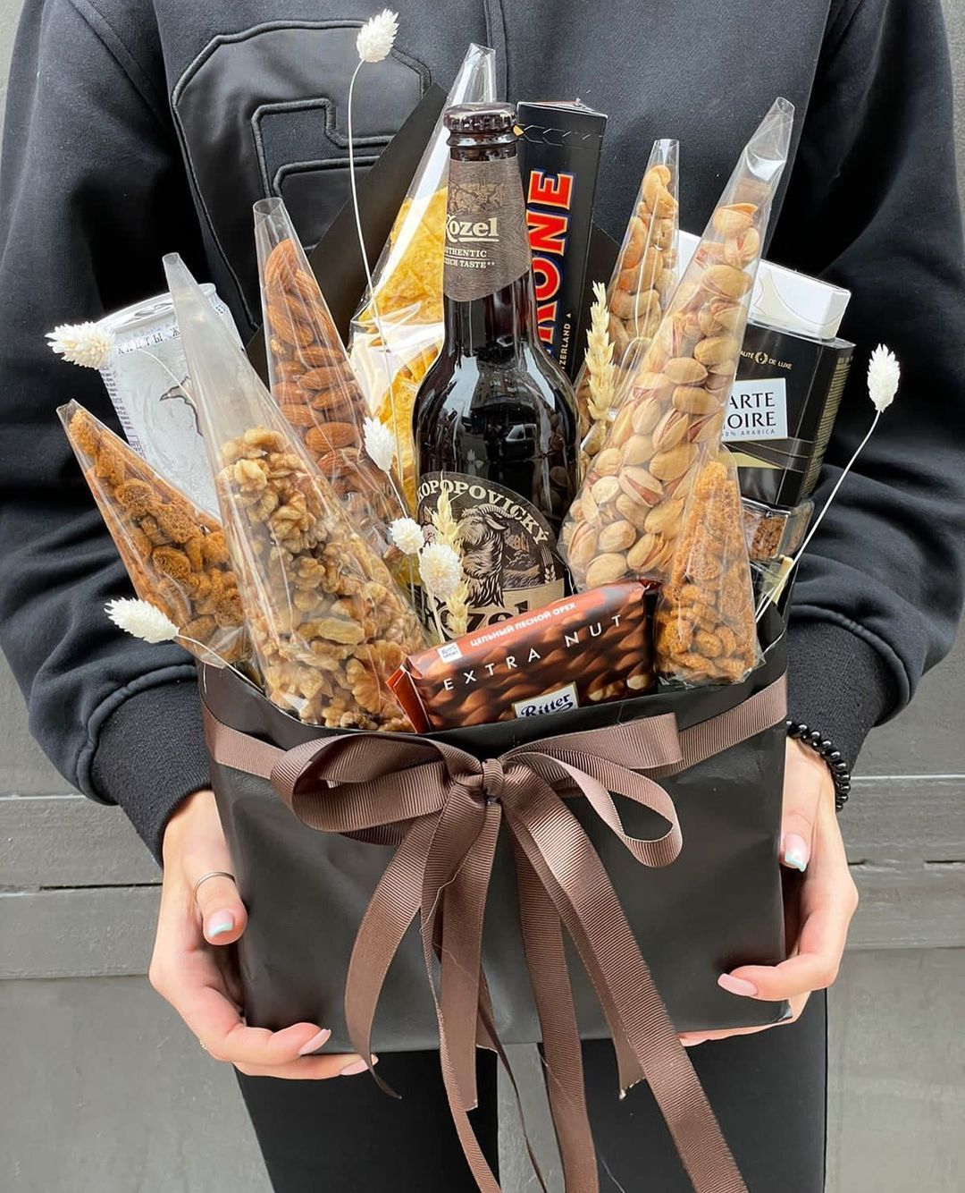 Мужской набор из алкоголя, орехов и евро-сладостей. Проявите фантазию или обратитесь к флористам магазина Zakazbuketov, чтобы подарок произвел нужное впечатление.